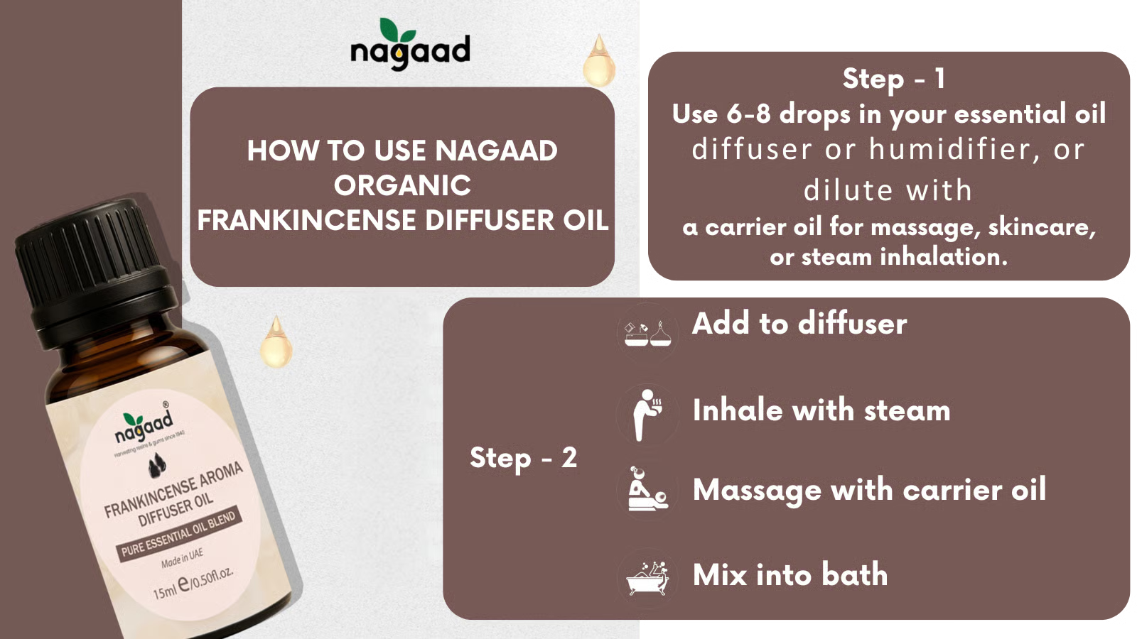 Frankincense Aroma Diffuser Oil is extracted from the resin of wild Boswellia trees, offering a naturally grounding scent perfect for relaxation and mindfulness. Sustainably harvested through a collaboration between Nagaad Resins and local communities in Eastern Africa.