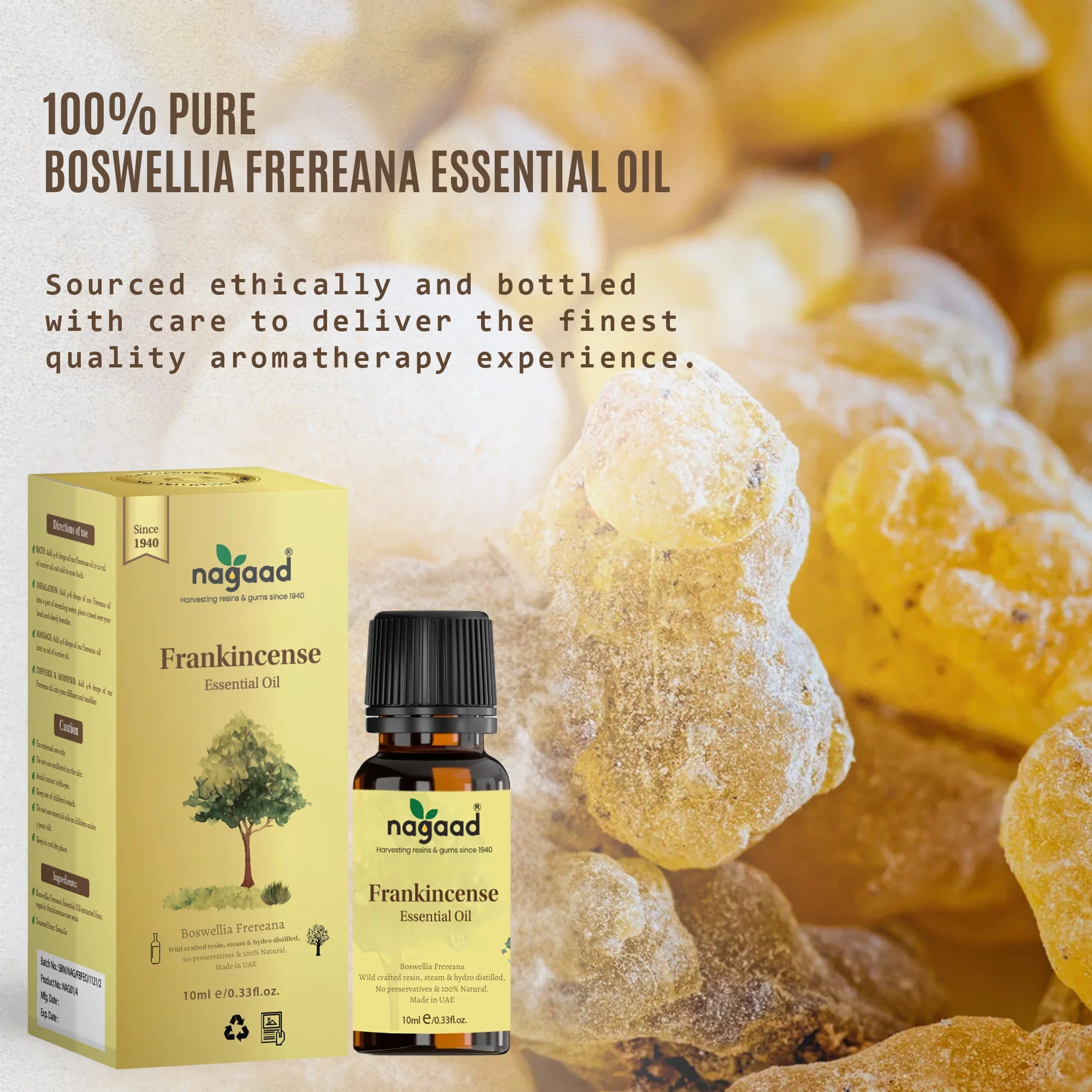 Frankincense Frereana essential oil has a warm, woody-citrus aroma and a light yellow color. It is prized for its strong anti-inflammatory and skin-rejuvenating properties. This oil helps relieve stress, reduce pain, and boost the immune system.